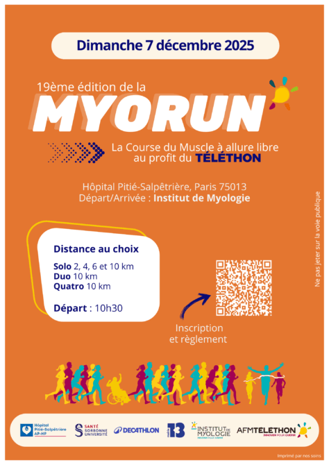 MyoRun > Course à pied à allure libre, seul·e ou en équipe, sur une distance au choix : 2, 4, 6 ou 10 kms > Renseignements et inscriptions |