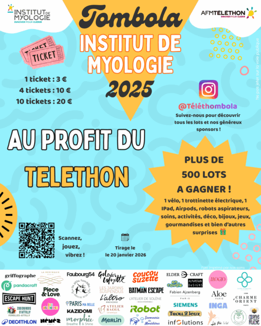 Nous sommes heureux de vous annoncer le lancement du Téléthon de l’Institut sur le site de l’hôpital de la Pitié-Salpêtrière, Paris 13ème, dès le mois de novembre.