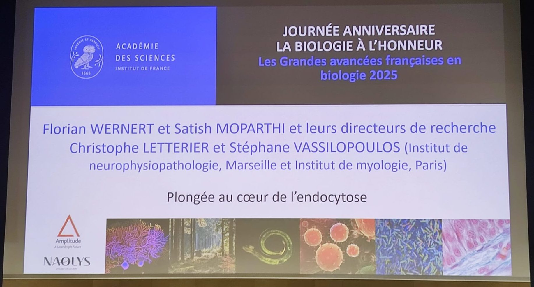This award, presented each year by the Académie des Sciences to 6 young researchers, aims to highlight different facets of 21st century biology. The awards were presented at the Académie des Sciences in Paris on 17 June in the presence of the co-winners’ research directors Stéphane Vassilopoulos (Centre de Recherche en Myologie, Institut de Myologie) and Christophe Leterrier (Université Aix-Marseille, CNRS).