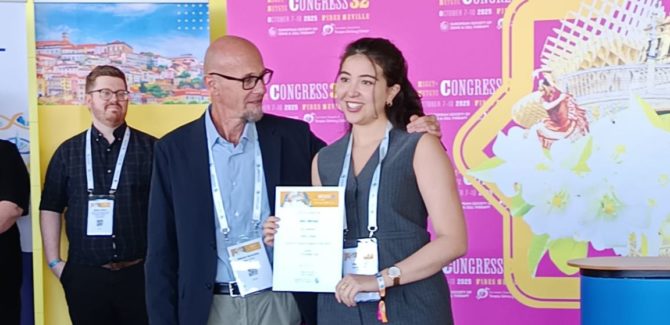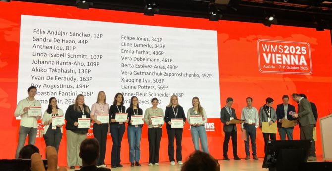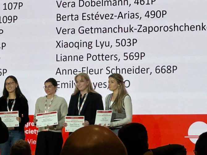 At the 30th International Congress of the World Muscle Society (WMS), held from 7 to 11 October 2025 in Vienna, Austria, postdoctoral researcher Eline Lemerle received the Elsevier Poster Prize. This prize recognises a few oral presentations or posters by young researchers from among the dozens submitted. Her poster focuses on her work carried out as part of the DREAMS project, which helps to stimulate innovation in autophagy research and studies on neuromuscular disorders: